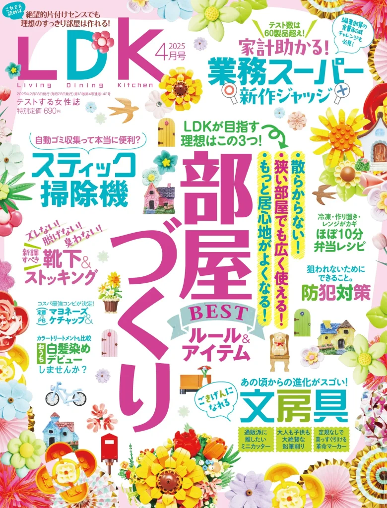 LDK 2025年4月号 部屋づくりBEST ルール&アイテム 掲載商品: 「ドロワー オーガナイザー a Tシャツケース」 「ドロワー オーガナイザー b ランジェリーケース」 「ドロワー オーガナイザー c ソックスケース」 P.23「部屋づくりのBESTルール&アイテム」特集でご紹介いただきました。 発刊日 :2025年2月28日(金)