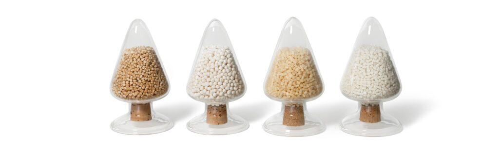 当社は製品メーカーであると同時に、環境配慮型素材を開発・供給する素材メーカーでもあります。会場では、その技術力と素材の多様性を示す、様々な樹脂ペレットを展示します。